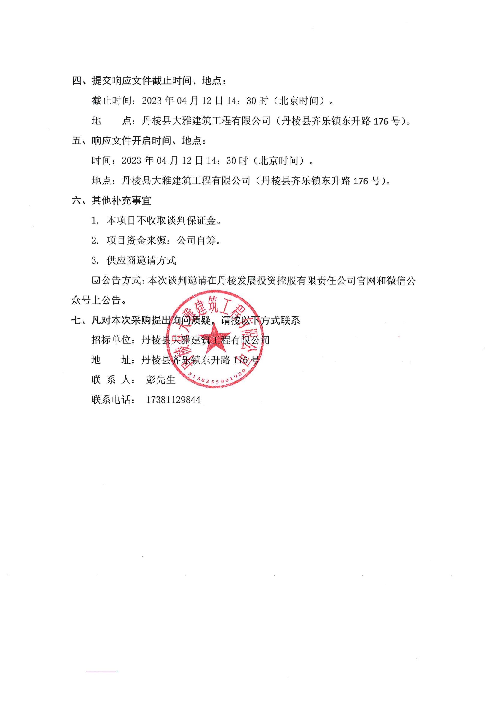 丹棱縣食品園區(qū)建設(shè)項(xiàng)目(一期)--標(biāo)準(zhǔn)化廠房一標(biāo)段(EPC)電梯采購(gòu)及安裝采購(gòu)項(xiàng)目談判邀請(qǐng)公告
