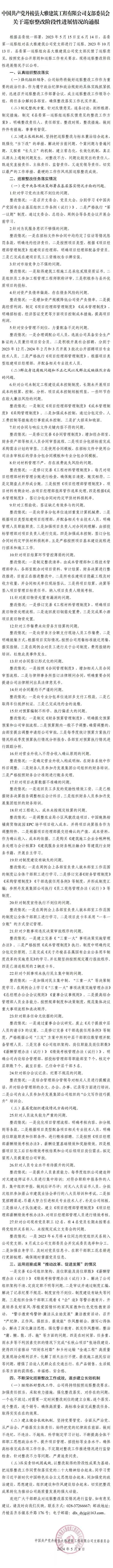 中國共產(chǎn)黨丹棱縣大雅建筑工程有限公司支部委員會(huì)關(guān)于巡察整改階段性進(jìn)展情況的通報(bào)
