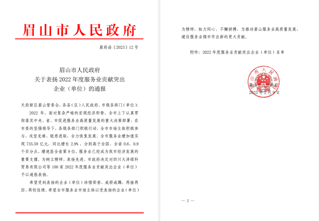 《關于表揚2022年度服務業(yè)貢獻突出企業(yè)(單位)的通報》